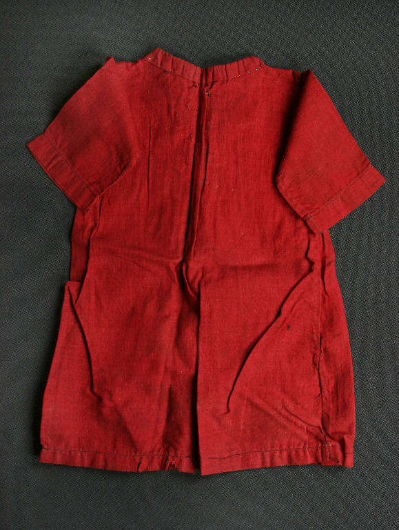 L'abito è una semplice tunica di tela rossa sfoderata; nel collo è inserito un cordoncino bianco per il fissaggio a coulisse.