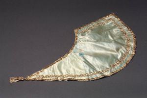 Il mantelletto, di forma triangolare con bordo stondato, è di seta azzurro pallido con fodera di tela azzurra. Presenta un bordo decorato con nastro argentato e passamaneria argento. Ad una estremità è cucito un fiocco di passamaneria argento.