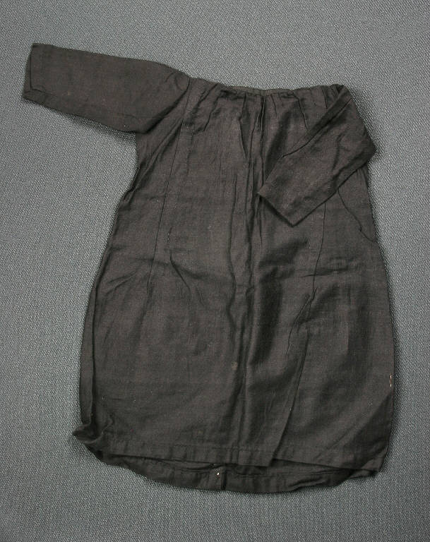 L'abito è una semplice veste di cotone nero sfoderata con scollo tondo.