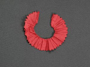 Il colletto è di cotone rosso arricciato.