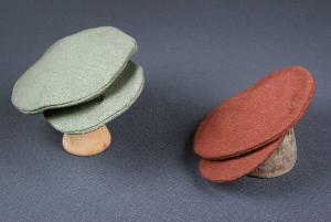 Berretti maschili di forma circolare realizzati in panno di lana color grigio e marrone e con visiera cucita alla calotta.