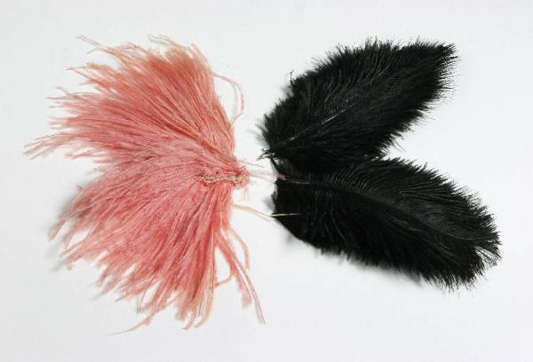 Tre piume di struzzo nere e due rosa.