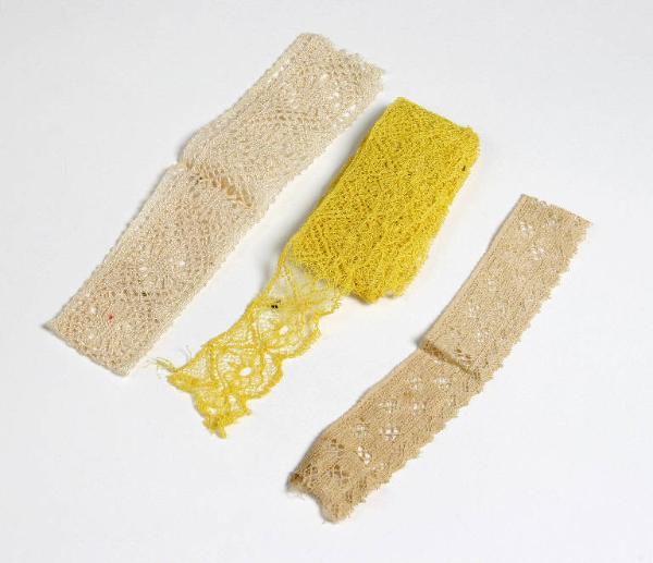 Due nastri di pizzo beige e uno di pizzo giallo.