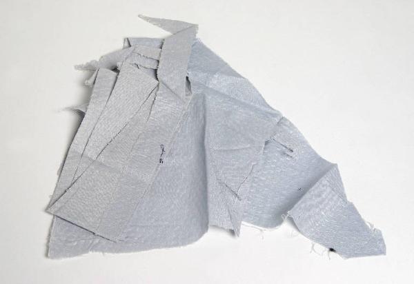 Tagli di cotone grigio chiaro operato con pois in rilievo.