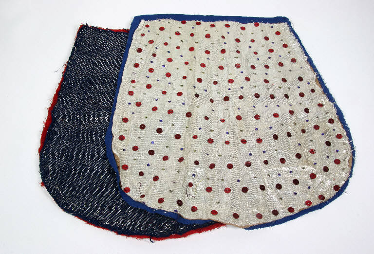 Mantelli di tessuto laminato ricamato con paillettes imbastiti con panno.