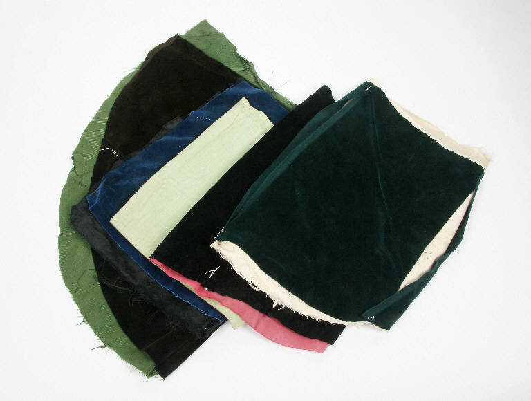 Mantelle di velluto di vari colori imbastite con cotone o raso.