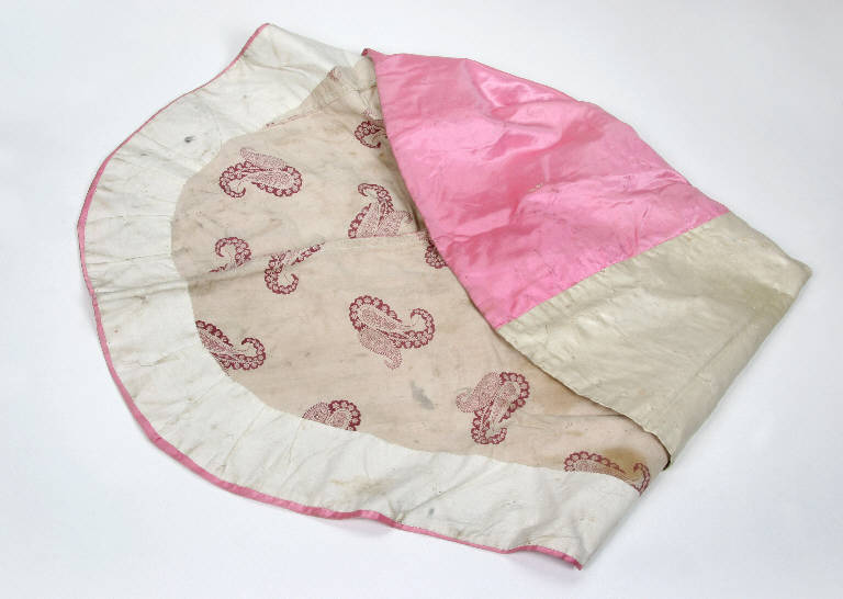 Abito non finito da marionetta di raso rosa e bianco con inserto in cotone damascato.