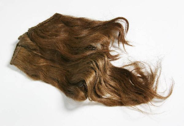Quattro frange lunghe di capelli lisci naturali castano chiaro.