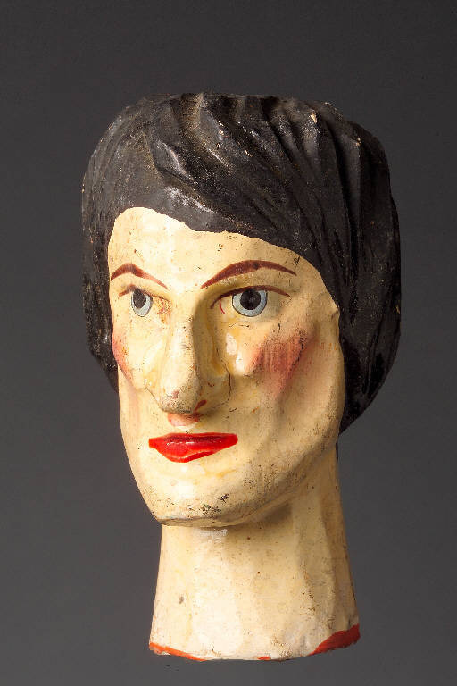 - NOTIZIE STORICO CRITICHE Teste prodotte artigianalmente in serie dalla prima metà dell'800 fino alla seconda guerra mondiale. Le varie famiglie di scultori si specializzavano nei soggetti che affluivano ad un committente che le acquistava.\nQuesti le cedeva a venditori ambulanti che riempivano le gerle di queste teste e di altri manufatti in legno prodotti nella zona (giocattoli,stoviglie,ciotole). Si ritrovano teste in collezioni di varie parti d'Europa dall'Inghilterra alla Grecia, dalla Francia ai Paesi dell'est Europa. In Italia sono presenti nelle seguenti collezioni pubbliche:Museo Teatrale alla Scala, Scuola Paolo Grassi, Museo Faraggiana di Novara, il Castello dei Burattini di Parma, Collezione Forlai del Comune di Forlì,e in numerose collezioni private, tra queste la più importante è la Collezione Mercuriali di Cesenatico. Queste teste, per la maggioranza di piccole dimensioni servivano poi per essere "vestite" e diventare burattini oppure con l'aggiunta successiva di un corpo (non prodotto in Val Gardena), diventare marionette. Le teste prodotte in dimensioni maggiori erano utilizzate da burattinai e marionettisti professionisti. Le teste dopo essere state pennellate di bianco, venivano dipinte a tempera e assumevano l'aspetto semilucido con l'aggiunta, successiva, di chiaro d'uovo. I soggetti relativi alle teste erano anche differenziati per aree culturali (Fagiolino,Sandrone,Gioppino: per l'Italia settentrionale; Guignol e Gnafron\nper la francia; Punk e Judy per l'Inghilterra, Kasperl per la Germania e i Paesi dell'Est Europeo), mentre le maschere della Commedia Dell'Arte ( Arlecchino, Brighella, Dottore, Capitano, Pantalone, ecc.), erano distribuite in tutta Europa.