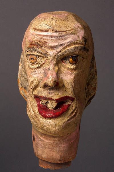- NOTIZIE STORICO CRITICHE Teste prodotte artigianalmente in serie dalla prima metà dell'800 fino alla seconda guerra mondiale. Le varie famiglie di scultori si specializzavano nei soggetti che affluivano ad un committente che le acquistava.\nQuesti le cedeva a venditori ambulanti che riempivano le gerle di queste teste e di altri manufatti in legno prodotti nella zona (giocattoli,stoviglie,ciotole). Si ritrovano teste in collezioni di varie parti d'Europa dall'Inghilterra alla Grecia, dalla Francia ai Paesi dell'est Europa. In Italia sono presenti nelle seguenti collezioni pubbliche:Museo Teatrale alla Scala, Scuola Paolo Grassi, Museo Faraggiana di Novara, il Castello dei Burattini di Parma, Collezione Forlai del Comune di Forlì,e in numerose collezioni private, tra queste la più importante è la Collezione Mercuriali di Cesenatico. Queste teste, per la maggioranza di piccole dimensioni servivano poi per essere "vestite" e diventare burattini oppure con l'aggiunta successiva di un corpo (non prodotto in Val Gardena), diventare marionette. Le teste prodotte in dimensioni maggiori erano utilizzate da burattinai e marionettisti professionisti. Le teste dopo essere state pennellate di bianco, venivano dipinte a tempera e assumevano l'aspetto semilucido con l'aggiunta, successiva, di chiaro d'uovo. I soggetti relativi alle teste erano anche differenziati per aree culturali (Fagiolino,Sandrone,Gioppino: per l'Italia settentrionale; Guignol e Gnafron\nper la francia; Punk e Judy per l'Inghilterra, Kasperl per la Germania e i Paesi dell'Est Europeo), mentre le maschere della Commedia Dell'Arte ( Arlecchino, Brighella, Dottore, Capitano, Pantalone, ecc.), erano distribuite in tutta Europa.