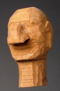 Testa abbozzata nella scultura dove sono presenti le cavità oculari, il naso e le orecchie. . Incompleto non funzionante.