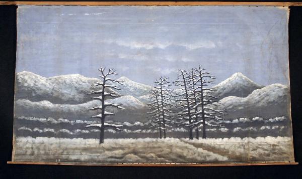 - NOTIZIE STORICO CRITICHE Utilizzato per la rappresentazione "Gli esiliati in Siberia". I materiali Preti di questa Collezione provengono dall'edifizio di Carlo Preti al quale si sono aggiunti nei primi anni del '900 quelli del fratello Guglielmo quando questi decide di ritirarsi dal lavoro. A questi si aggiungono quelli prodotti da Ermenegildo Preti e dai suoi numerosi figli (Rosa, Nando, Dario, Maria). Salvo indicazioni diverse nelle schede, è difficile risalire all'autore anche perchè il nucleo è stilisticamente omogeneo sia per quanto riguarda i burattini sia per le scenografie.