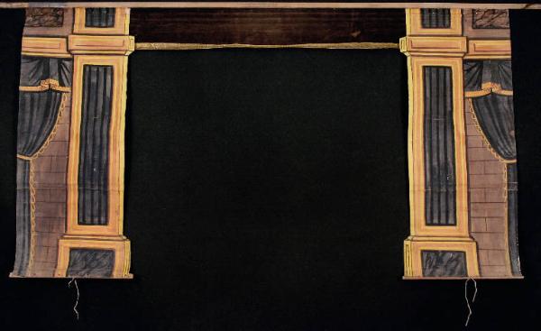 E' inchiodato ad un bastone di sezione circolare o quadrangolare mediante chiodi e pezzetti di cuoio salvacarta. Alle estremità inferiori presenta delle asticelle di legno alle quali è fissato un nastrino con duplice funzione, quella di tendere la carta (legandole a qualche supporto della baracca) e quella di tenere il principale arrotolato al momento di riporlo. Alla sommità è presente una mantovana di velluto marrone con bordo in passamanria oro.