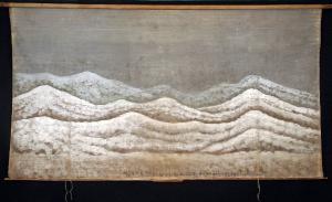Il fondale è inchiodato ad un bastone di sezione circolare o quadrangolare mediante chiodi e pezzeti di cuoio salvatela. Sul retro è dipinto un villaggio.