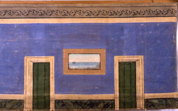 Il fondale è inchiodato ad un bastone di sezione circolare o quadrangolare mediante chiodi e pezzeti di cuoio salvatela. Sul retro è raffigurato l'interno di una cella.