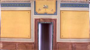 Il fondale è inchiodato ad un bastone di sezione circolare o quadrangolare mediante chiodi e pezzeti di cuoio salvatela. Il fondale è ritagliato nella parte centrale ed è dipinto su entrambi i lati. Sul retro è raffigurato l'interno di una camera rossa.