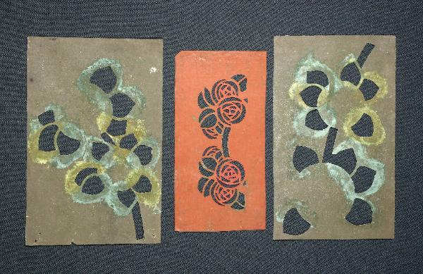 I cartoni per trasposizione, realizzati in cartoncino disegnato e ritagliato secondo un motivo decorativo, venivano utilizzati per creare decorazioni all'interno delle scenografie, consentendo di riprodurre in serie il motivo ornamentale. Tutte tre le mascherine presentano una decorazione di tipo floreale; in particolare quella più piccola raffigura un disegno a roselline.