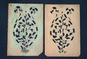 I cartoni per trasposizione, realizzati in cartoncino disegnato e ritagliato secondo un motivo decorativo, venivano utilizzati per creare decorazioni all'interno delle scenografie, consentendo di riprodurre in serie il motivo ornamentale. Le mascherine presentano un motivo decorativo a forma di lira.