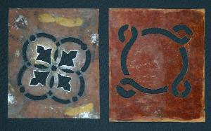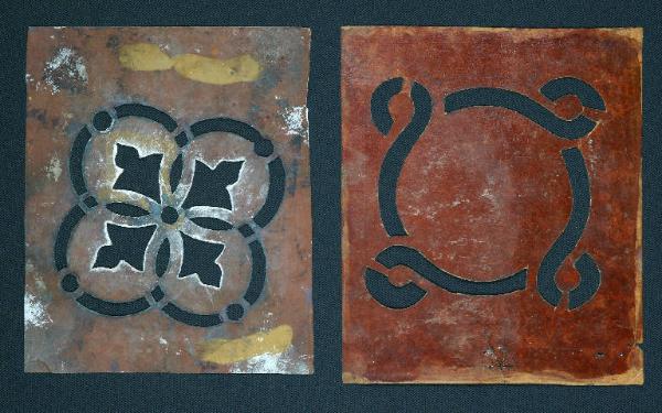 I cartoni per trasposizione, realizzati in cartoncino disegnato e ritagliato secondo un motivo decorativo, venivano utilizzati per creare decorazioni all'interno delle scenografie, consentendo di riprodurre in serie il motivo ornamentale. La prima mascherina presenta un disegno floreale, mentre la seconda raffigura un motivo decorativo ornamentale di forma circolare.