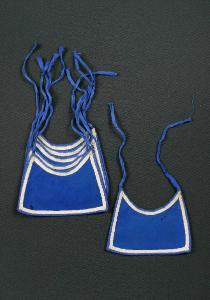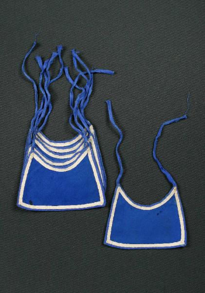 I sei colletti sono di pannolenci blu con fodera nera. Sono bordati con traversino blu e bianco più sottile in sovrapposizione. I colletti terminano con dei legacci di traversino blu.