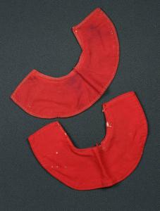 I due colletti rotondi sono di cotone rosso con fodera rossa e bordati con traversino dello stesso colore.