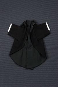 La giacca del frack è di tessuto di lana nero con fodera di cotone nero. Il collo è di raso nero e nelle maniche sono cuciti i polsini di cotone bianco. Posteriormente è praticato un taglio longitudinale in modo che il lembo sinistro si sovrapponga al destro. Il bordo è stondato.