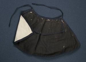 Il mantello con bordo inferiore arrotondato è in tessuto di lana marrone piuttosto liso; ha fodera beige ed è presente una breve mantellina con fodera uguale. Bordo di traversino nero che funge anche da cordoncino per il fissaggio.