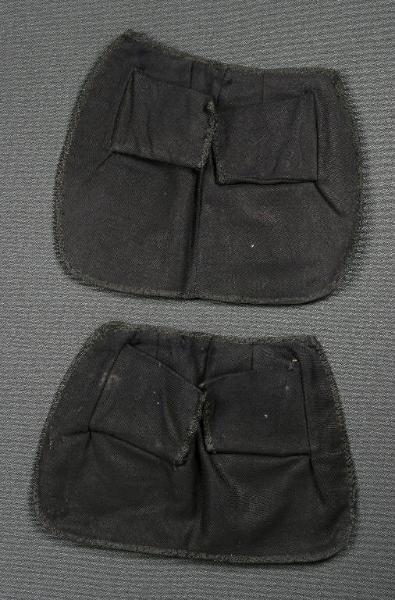 Le due giacche nere sono realizzate in tessuto di lana a righe sottilissime con fodera nera di cotone. Sono bordate all'intorno e ai polsi con nastro di raso nero.