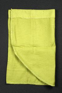 Il mantello è di cotone verde sfoderato con il bordo stondato.