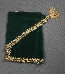 Mantello di velluto verde a forma triangolare con bordo inferiore stondato, fodera di cotone dello stesso colore. Il bordo è decorato con passamaneria oro e con fiocco di passamaneria dorata a frange ad una estremità.