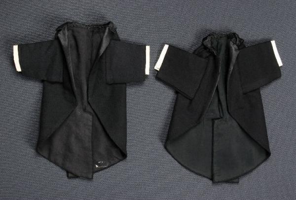Le giacche da frack sono realizzate in tessuto di lana nero con fodera di cotone nero. Il colletto e i revers sono in raso nero. La stoffa delle maniche è di lana nera con un sottile disegno a losanghe e all'interno sono cuciti i polsini di cotone bianco. Posteriormente la giacca ha un taglio longitudinale e il lembo sinistro è sovrapposto a quello destro. Il bordo inferiore è stondato.