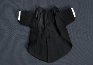 La giacca da frack è realizzata in tessuto di lana nero con fodera di cotone nero. Il colletto è in raso nero. Nelle maniche sono cuciti i polsini di cotone bianco. Posteriormente la giacca ha un taglio longitudinale e il lembo sinistro è sovrapposto a quello destro. Il bordo inferiore è stondato.