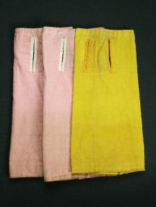 Le vesti sono realizzate in velluto, due di color rosa e una giallo ed hanno fodera grigia. Le aperture per le braccia sono bordate da traversino; bianco per le vesti rosa, giallo per la veste gialla.