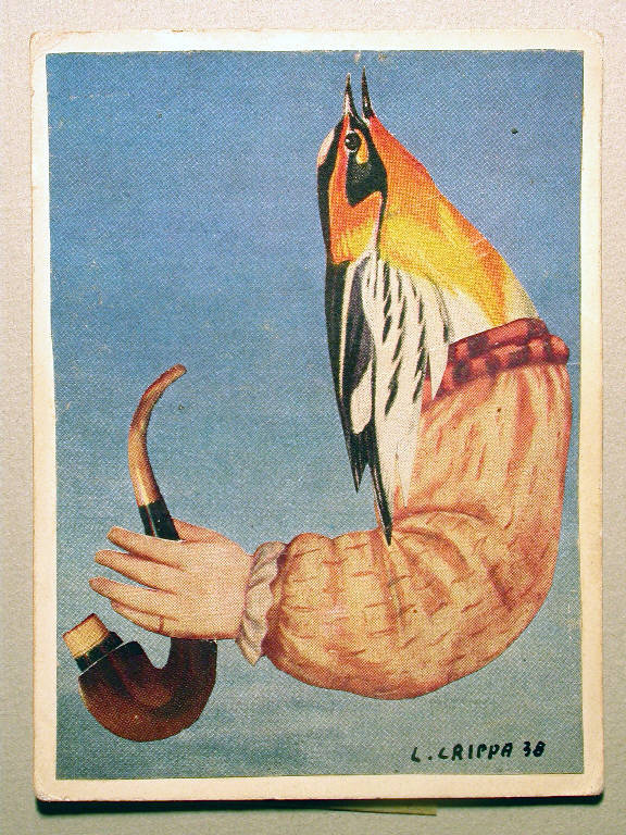 Senza titolo. Composizione surreale con uccello, braccio femminile e pipa