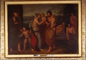 - NOTIZIE STORICO CRITICHE Il dipinto venne esposto a Brera nel 1820 come saggio per il quarto anno di pensionato governativo. Venne successivamente ripresentato dall'artista all'Esposizione del 1823 insieme ad una "Madonna con Bambino". In questa tela, il Cattaneo, allievo di Giuseppe Bossi, si rifà alla maniera di Leonardo da Vinci nel tentativo di rendere morbidi i contorni e nella resa atmosferica. Il quadro risulta però, nel complesso, mal risolto nella composizione e carente nella resa delle anatomie.