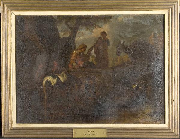 - NOTIZIE STORICO CRITICHE Dell'opera non si hanno notizie certe. La composizione e la tipologia della tela rimandano alle opere del van Bloemen come il cavallo pezzato in primo piano che ritorna molto spesso quasi identico in altre opere del pittore. Anche la resa del fogliame e delle figure conducono all'artista di Anversa.