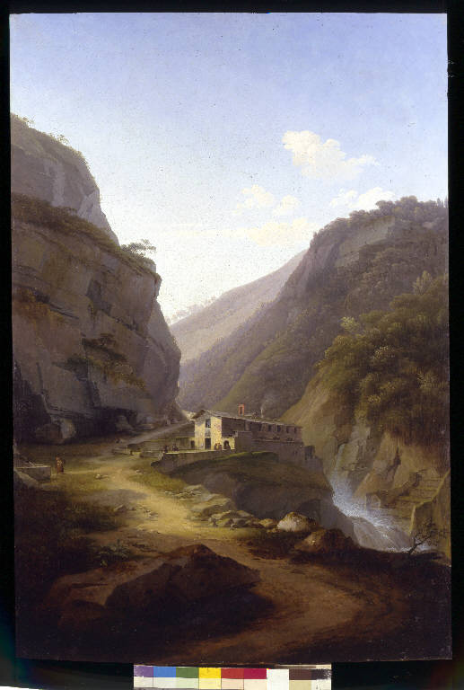 - NOTIZIE STORICO CRITICHE Il dipinto, come dimostrano la documentazione conservata in Accademia, venne eseguito nel 1834 quando il Governo commissionò al pittore una veduta lungo la statale che va da Asso a Bellagio e che, successivamente, venne consegnato all'Accademia. La tela, esposta a Brera nell'anno seguente, venne commentata anche su "Le Glorie" del 1835 che giudicò l'opera troppo accademica per l'attenzione meticolosa alla resa dei particolari.