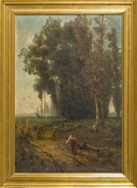 - NOTIZIE STORICO CRITICHE E' stato possibile attribuire la tela al Corvini grazie ad un'etichetta (incollata sul telaio a sinistra) indicante l'autore, il titolo dell'opera ed un numero, forse, d'inventario. Il dipinto, raffigurante uno scorcio di campagna con contadina, fa parte di quella pittura "buona per tutte le occasioni" per cui il Corvini era riconosciuto nell'ambiente artistico milanese. Per la somiglianza stilistica con i dipinti conservati presso la Galleria d'Arte Moderna di Milano datati 1865, possiamo attribuire anche questa tela al medesimo periodo.