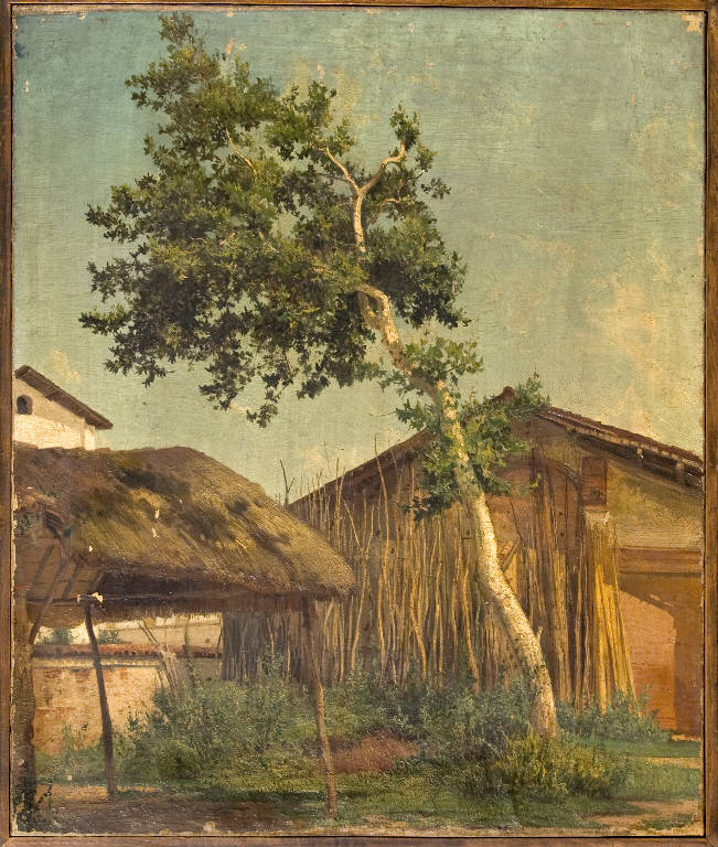 - NOTIZIE STORICO CRITICHE Del dipinto di Mancini si hanno poche e discordanti notizie: nel 1943, la tela era infatti registrata come "saggio scolastico finale" per la Scuola di Paesaggio allora diretta dal professor Giuseppe Bisi il quale esigeva che "dai singoli allievi di codesta scuola di paesaggio verrà mensilmente presentato un saggio di lavoro eseguito dal vero"; dallo spoglio degli archivi, però, dell'allora studente Mancini non v'è traccia. L'opera, databile intorno ai primi anni Cinquanta del XIX secolo (se la prima partecipazione del pittore alle mostre è del 1857), è caratterizzata dalla conduzione un pò sprezzata della superficie pittorica, a macchie di colore, riprendente i modi del Piccio.