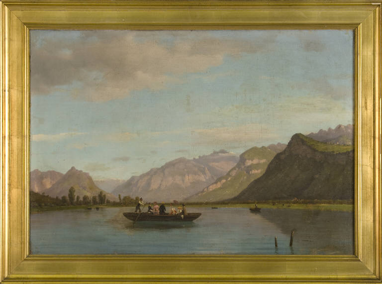 - NOTIZIE STORICO CRITICHE Il dipinto, commissionato al pittore da Giuseppe Bernasconi, ed esposto a Brera nel 1851, rappresenta una veduta del lago di Brivio. La tela risente, nei modi e nella composizione, dell'insegnamento del maestro Canella, in particolare della tela dell'artista veronese "Veduta del lago di Garda" (1844) che, come nella tela del Prinetti, rappresenta una barca in primo piano al centro del dipinto, con un rematore in piedi a sinistra, mentre la visione del lago si conclude con le montagne sullo sfondo.