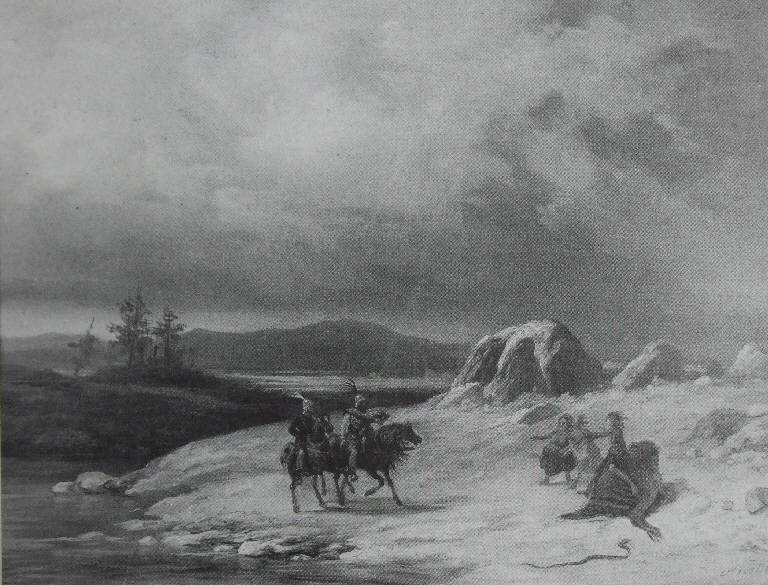 Macbeth e Banquo incontrano tre streghe, soggetto preso da Shakespeare. MACBETH E BANQUO