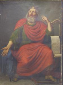 - NOTIZIE STORICO CRITICHE L'opera, giunta in Accademia come saggio del terzo anno di pensionato romano nel 1819, si caratterizza per l'impianto stilistico tipico del manierismo cinquecentesco sia nel modellato che nell'atteggiamento della figura riconducibile ai profeti michelangioleschi che decorano la Cappella Sistina. La tela presenta anche dei difetti nel rigido panneggio, come pure nella staticità della figura, dovuti al ribadito tentativo di emulare gli antichi maestri romani.