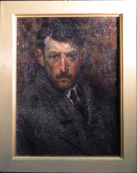 - NOTIZIE STORICO CRITICHE Il dipinto entrò a far parte della Collezioni dell'Accademia perchè saggio finale del pittore per il Pensionato Hayez. Iscrittosi alla Scuola di pittura del professor Tallone nel 1910, nel 1912, terminati gli studi concorse al premio Hayez, vincendolo. Come da regolamento, alla fine del biennio il pittore doveva consegnare all'Accademia il proprio autoritratto. Esiste un altro "Autoritratto" più tardo del pittore, esposto nel 1920 alla Famiglia Artsitica.