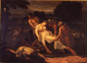 - NOTIZIE STORICO CRITICHE Diversamente da quanto indicato da Carlo Sisi, il dipinto, partecipante al Concorso di I classe indetto dall'Accademia di Brere per il 1809, come riportato nei "Discorsi... 1809" di quell'anno, il soggetto del dipinto "Alcuni pasori Parti, raccolta l'infelice e virtuosa Zenobia dal fiume Arasse, ove gittola la crudeltà di Radamisto suo sposo, si occupano a consolarla non meno che a medicarla dalle sue ferite", veniva tratto dagli annali di Tacito e non dalla tragedia "Rhadamiste et Zenobia" (1711) di Prosper Jolyot de Crebillon come indica, invece, lo storico. Certamente, non possiamo negare la fortuna goduta da questo tema, come dimostrano il quadro di Luigi Sabatelli dipinto per Tommaso Puccini (1803) e quello di Francesco Alberi esposto a Brera nel 1812 e subito acquistato dal Ministero per la Pubblica Istruzione. La scena si concentra nel momento in cui il corpo della donna viene recuperato dal fiume, offrendo al pittore l'occasione di enunciare le proprie fonti stilistiche: la "Deposizione" Baglioni di Raffaello per le pose dei pastori; la statuaria antica per il panneggio delle vesti di Zenobia; il classicimo poussiniano per il paesaggio arcadico che si staglia sullo sfondo; Giotto per la figura del pastore in primo piano.