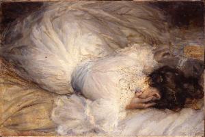 - NOTIZIE STORICO CRITICHE Nel 1907 il dipinto entrò nelle collezioni dell'Accademia come saggio per il pensionato Oggioni. L'opera venne eseguita a Parigi, perchè lo stesso artista aveva espresso la richiesta di trascorrere a Parigi il primo semestre di pensionato perchè "attratto da un vivissimo desiderio di studio". Nel 1907, l'artista inviò il dipinto come saggio finale che venne immediatamente esposto alla mostra annuale della Permanente con il titolo "L'abbandono". In questa tela è possibile ravvisare l'influsso del pitore Giuseppe Boldini che l'artista aveva avuto modo di conoscere a Parigi.