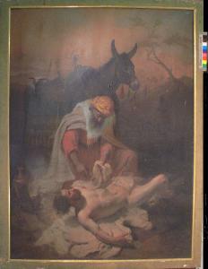 - NOTIZIE STORICO CRITICHE La tela pervenne in Accadenia perchè risultò vincitrice al Premio Canonica del 1851. Il Verazzi, allievo di Hayez a Brera, ambienta la scena rappresentante la parabola del buon Samaritano, su uno sfondo piuttosto convenzionale a cui, però, accosta alcuni dettagli resi con insolito realismo: le mani del Samaritano, la testa del mulo e il corpo dell'uomo soccorso che, per la posa, possiamo pensare che venne probabilmente desunto da un precedente studio di nudo accademico.