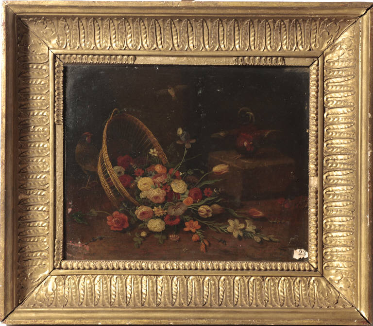 - NOTIZIE STORICO CRITICHE L'opera, giunta a Brera nel 1900 attraverso la cospicua donazione del conte Stampa, dal punto di vista stilistico può essere certamente attribuita a Jan van Kessel, artista belga nelle cui composizioni compaiono i dati di repertorio qui presenti: il canestro di paglia, i fiori, il pollame.