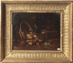 Canestro con fiori e pollame. NATURA MORTA CON POLLI