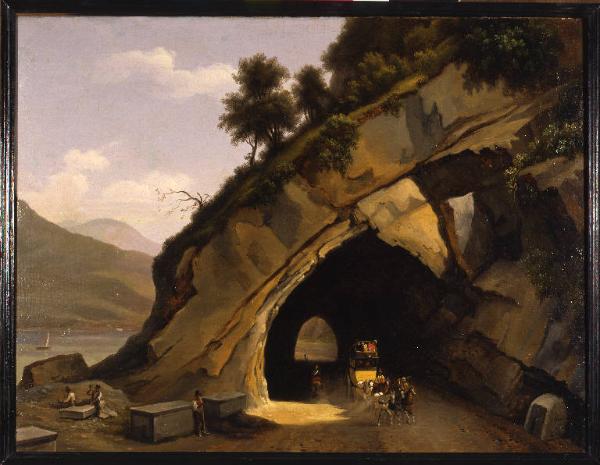 - NOTIZIE STORICO CRITICHE Il dipinto, realizzato nel 1831, venne esposto a Brera l'anno successivo insieme ad altre otto tele. Come nelle veduta del Gozzi di commissione governativa, anche il d'Azeglio conferma l'attenzione verso le novità politiche del suo tempo: infatti, la costruzione di infrastrutture fra le quali ad esempio, la galleria di Varenna, trovavano grande eco nelle riviste contemporanee e nella letteratura di viaggio. Della tela esistono due bozzetti che ne testimoniano la genesi: il primo è un disegno conservato nell' "Album di disegni" del 1831 del Museo Civico di Torino, il secondo è un bozzetto datato 1831 conservato nello stesso museo.