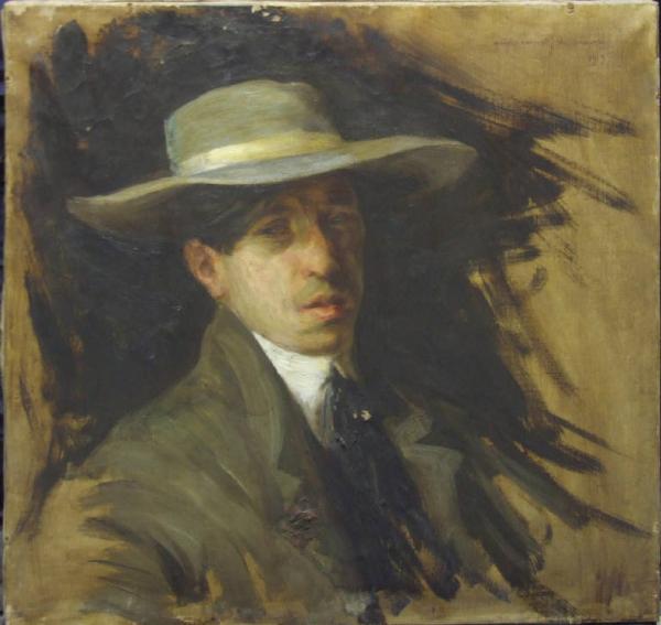 - NOTIZIE STORICO CRITICHE Guido Caprotti frequentò, sin dal 1908, il corso di pittura tenuto da Cesare Tallone a Brera e due anni dopo, nel 1810, presentò domanda per essere ammesso ai concorsi Hayez e Bozzi-Caimi, ottenendo entrambi i premi. Già in quell'occasione, la stampa dell'epoca non mancò di sottolineare le capacità pittoriche del giovane artista. Il dipinto, consegnato per la fine dei due anni di pensionato Hayez dopo un periodo trascorso all'estero, è impostato secondo la tradizione ritrattistica tardottocentesca secondo i modi di Cesare Tallone e Giovanni Boldini. Dal fondo, reso con un impasto più denso e scuro emerge il volto fermato, come un'istantanea, in un momento di malinconia. La parte destra della tela risulta non finita, secondo una tradizione tipica degli autoritratti.